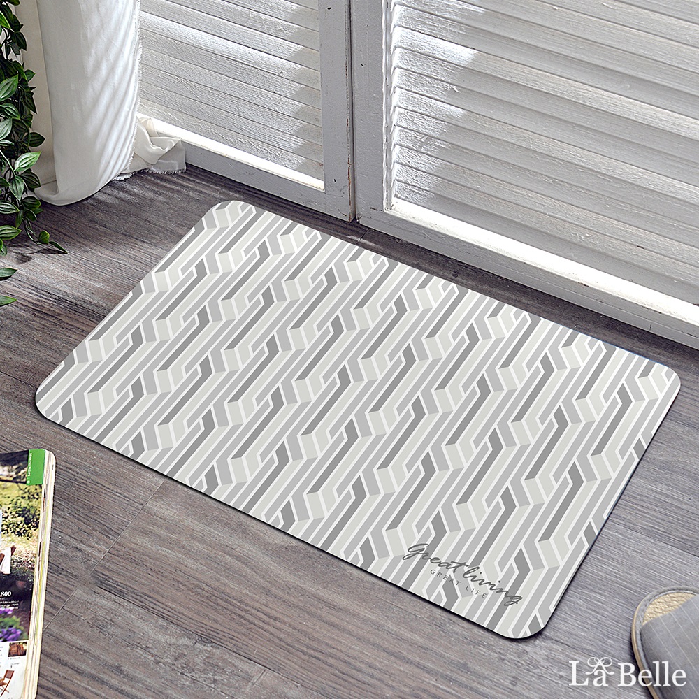 義大利La Belle《幾何直紋》抗菌可水洗軟式珪藻土強效吸水地墊 60*39CM